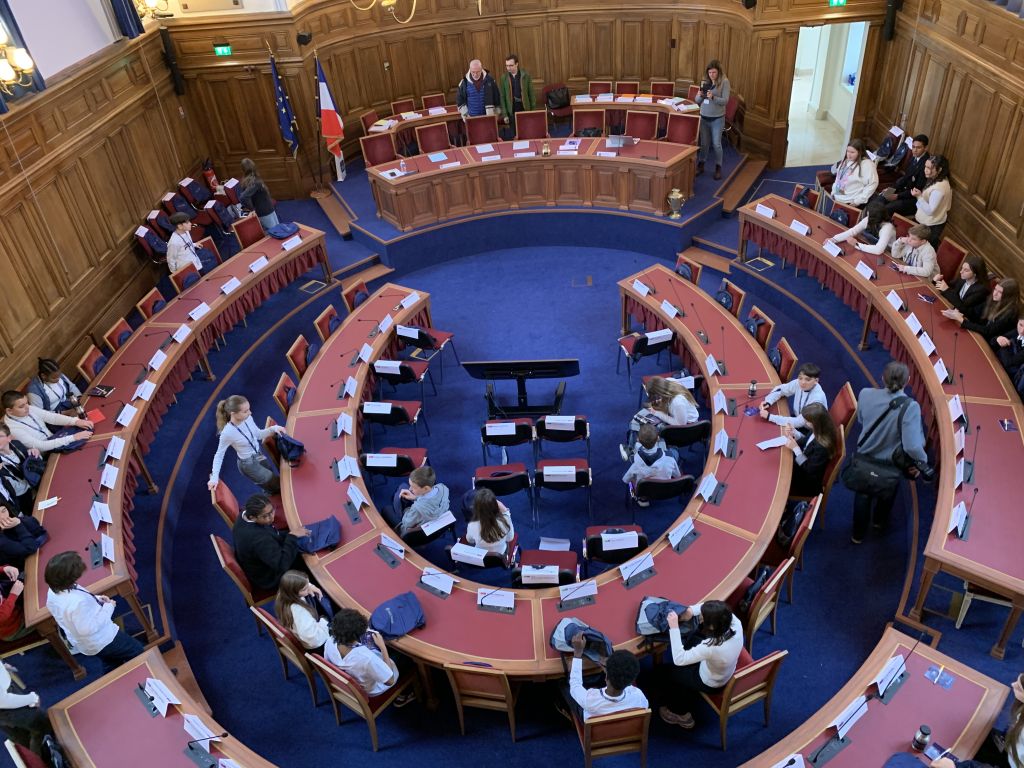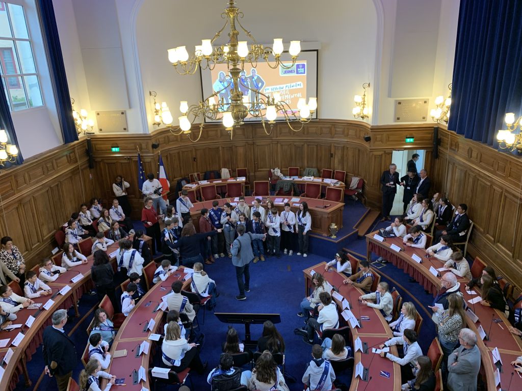 élus représentants au Conseil Départemental 71 des Jeunes se sont rendus dans l'hémicycle à Mâcon pour la première assemblée plénière de leur mandat 2025 - 2027. L'accueil a été fait par la référente du CDJ 71 Fabienne Dauvergne, mais aussi par Monsieur Accary, Président du Département de Saône et Loire ainsi que Monsieur le Préfet, Dominique Dufour. Ce sont de nombreux collèges de Saône et Loire qui participent, sur tous les bassins du département, avec un nombre total de 106 jeunes élus !