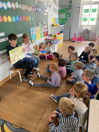 Tous les vendredis, deux Cm2-B lisent un album aux GS de Mme Morisson.
