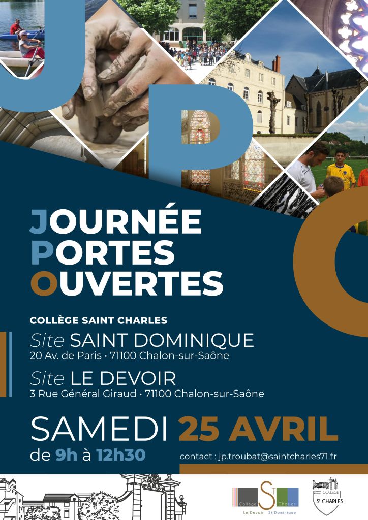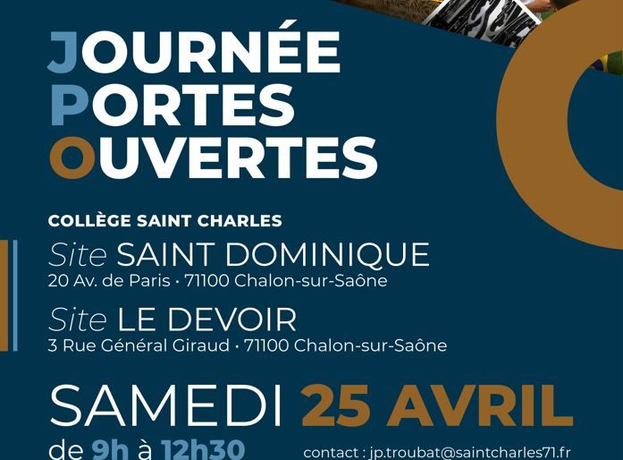 Les Portes Ouvertes du Collège Saint Charles ont lieu le samedi 25 avril 2026 de 9h à 12h30.